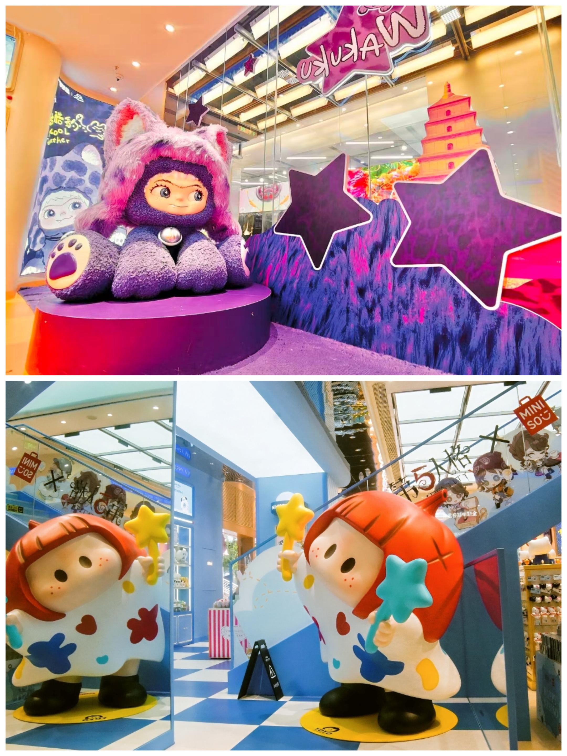 该店精准落位于高校密集、客群年轻的西安小寨商圈——原力场商业区,与品牌“兴趣消费”战略高度契合。门店占据近1200平方米的三层空间,外立面以巨型立体毛绒WAKUKU装置打造出强烈视觉符号。店内通过模块化与策展式设计,融合史迪奇、疯狂动物城等热门IP主题场景,打破了传统零售布局,为消费者营造了“逛店如逛园”的沉浸式体验。