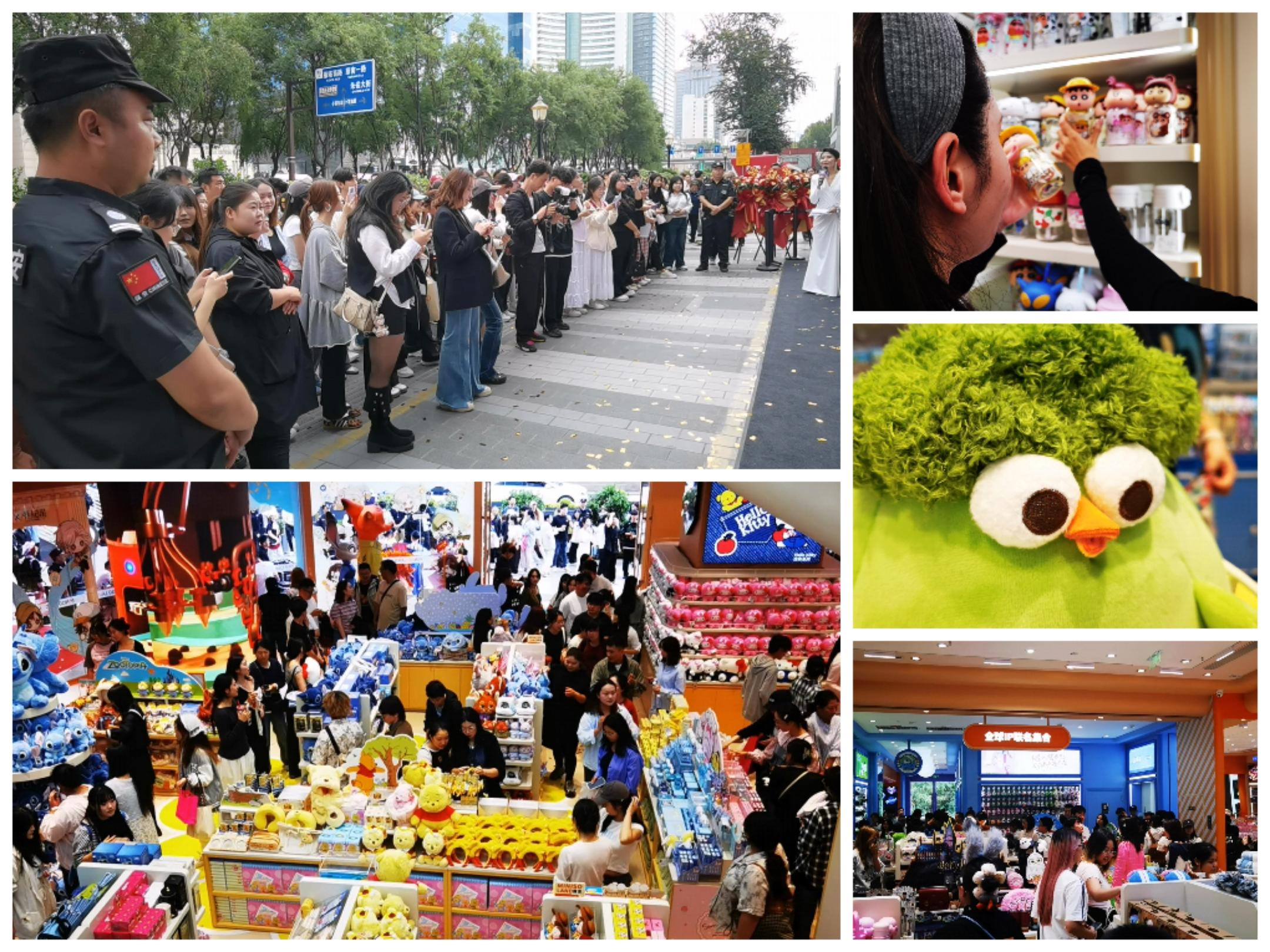 门店商品种类超过6000种,IP产品占比高达80%,涵盖三丽鸥、迪士尼、宝可梦、哈利·波特等国际热门IP及WAKUKU等自有原创IP。凭借独特的场景设计与强大的IP阵容,该店在试营业期间便吸引大量粉丝排队购物。据介绍,试营业期间该店日均销售额达30万元,预计国庆黄金周期间业绩将再度攀升。