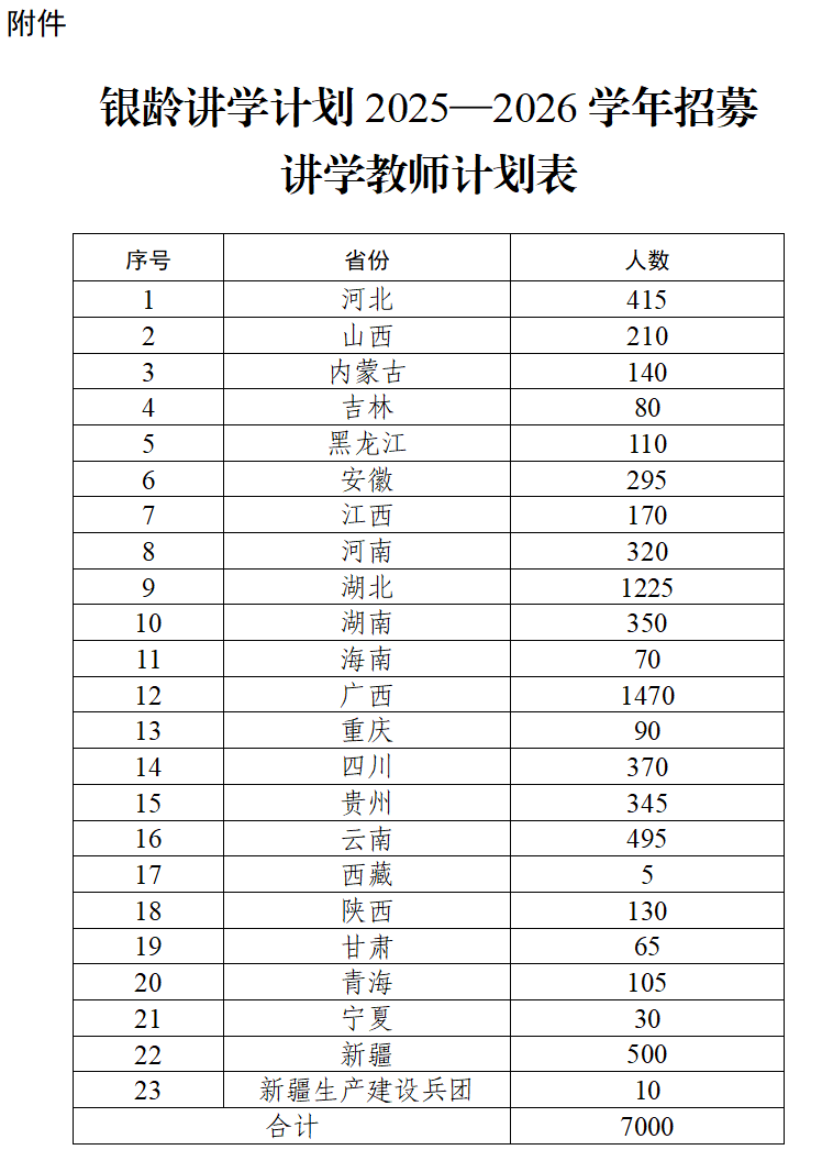 近日,教育部、财政部联合印发《关于做好2025年银龄讲学计划有关实施工作的通知》(以下简称《通知》,点击左下角“阅读原文”可查看全文)。根据国家银龄教师行动计划整体部署,今年计划招募7000名银龄讲学教师,发挥优秀退休教师引领示范作用,帮助提升农村学校教学水平和育人管理能力,推动城乡教育优质均衡发展。一起来看——