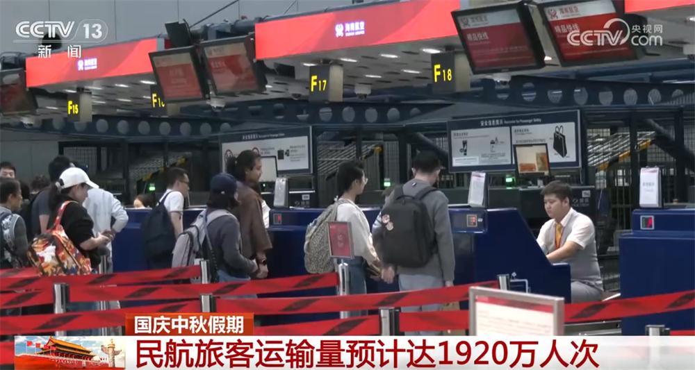 今年国庆、中秋假期叠加,人们旅游度假、探亲访友等出行需求旺盛。10月1日,全国民航预计保障航班19682班,比去年同期增长3.97%。根据民航局的预测,今年的国庆中秋假期,民航旅客运输量预计达1920万人次,创历史同期最高水平。