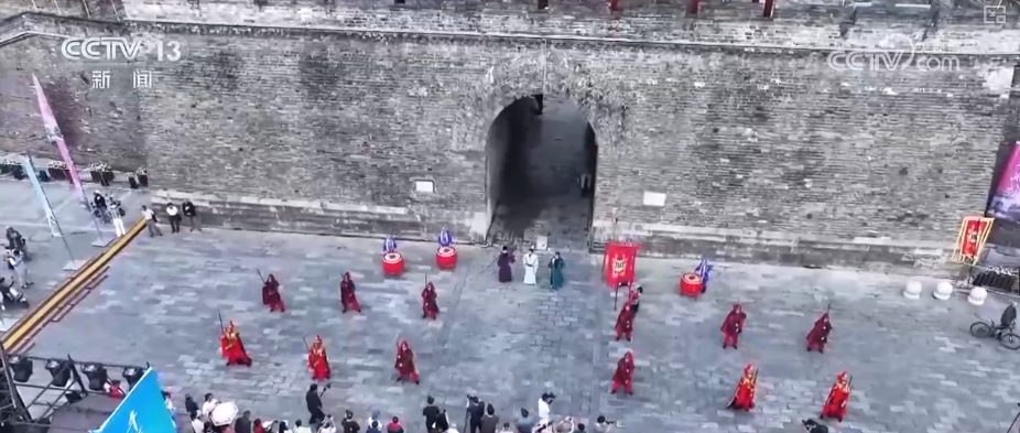 国庆长假期间,湖北荆州精心打造多场实景剧,从“桃园结义”到“屈子荆歌”,为游客带来沉浸式体验。在荆州古城大北门,《三国英雄路》入城仪式震撼上演,数十名身着精良甲胄的士兵,手持长戟列阵城门,伴随战鼓雷鸣与旌旗翻飞,带领游客瞬间穿越至1800年前的金戈铁马时代。实景演艺,让静态三国故事、历史文化,通过动态演绎“活”起来。