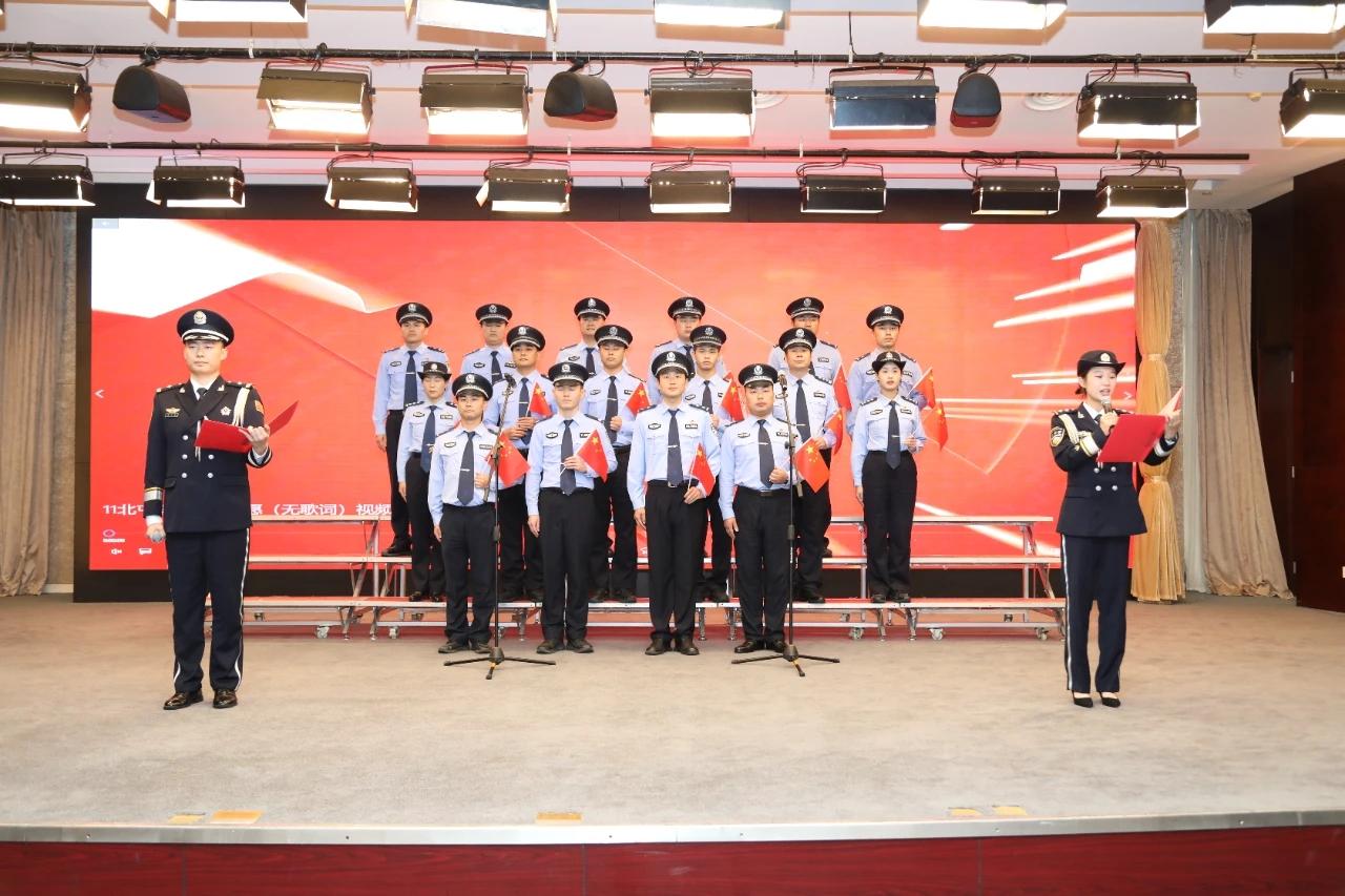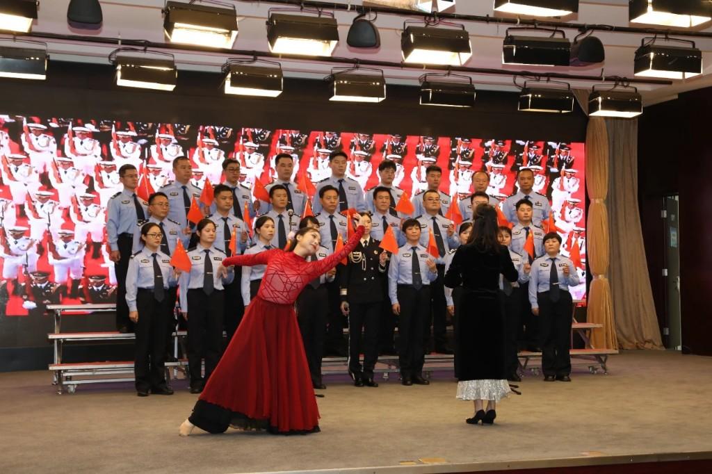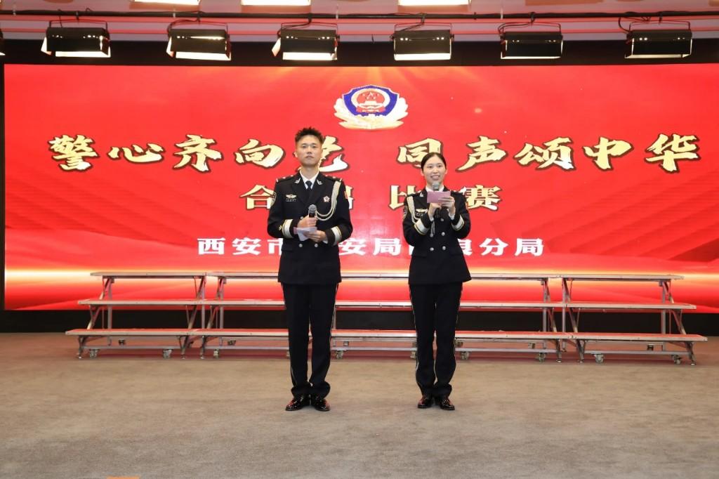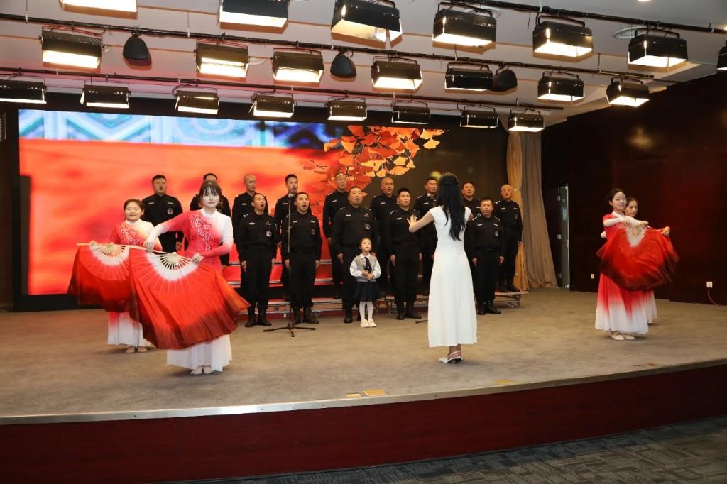 活动伊始,全体民警辅警起立奏唱国歌,合唱比赛正式拉开序幕。全局14支参赛队伍依次登台,以歌抒怀、以歌咏志,真情抒发对伟大祖国的无限忠诚与热爱,充分表达阎良公安红心向党、一心为民的政治品格。