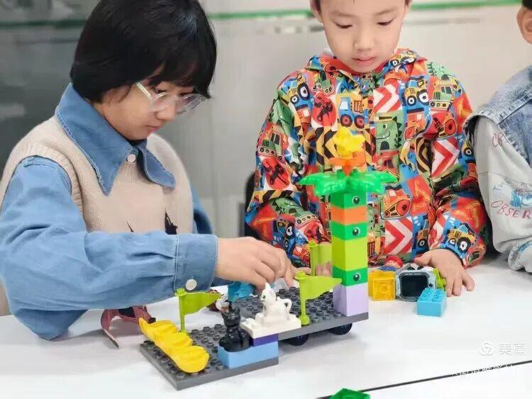 活动开场,主持人用清脆的声音像宣布“魔法任务”般,揭晓了当日搭建主题——“我心中的未来城市或美丽乡村”。话音刚落,孩子们的眼睛瞬间亮了起来,低龄组的小朋友拉着家长的手迫不及待拿起大颗粒积木,中高龄组的小团队则围在一起,叽叽喳喳地讨论着“要给城市装会飞的公交车”“要给乡村建彩虹桥”。