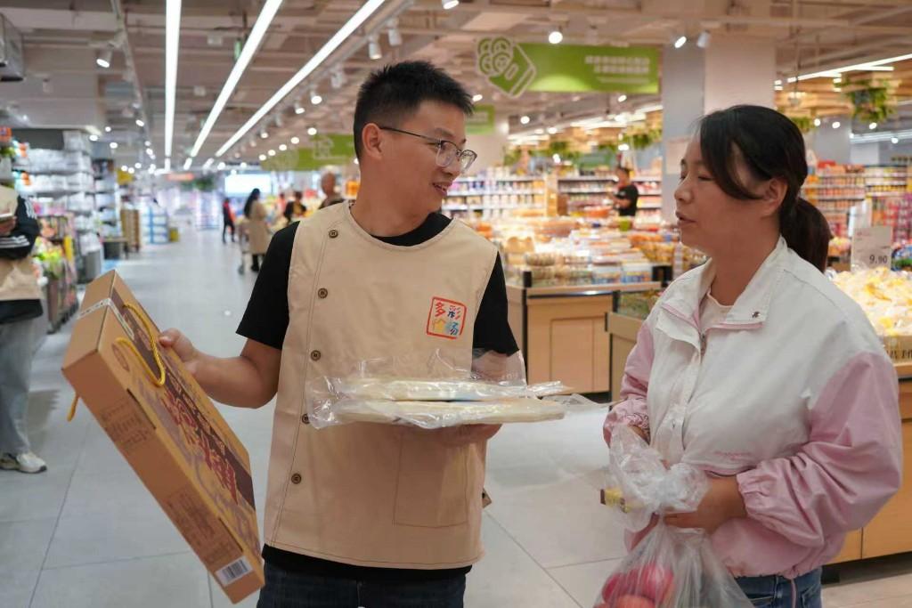 超市食品区负责人表示:“这次活动为我们超市注入了新的活力,一上午客流量明显增加,许多消费者都是专门前来体验和购买徐杨农产品的。”“这是我们首次以‘抖音直播+商超’的方式推广农产品,让消费者可以直观体验、品尝徐杨彩色小麦制品、醪糟、锅盔等特产,同时,还能拓宽农产品销售渠道。”徐杨街道办事处副主任刘娟介绍。