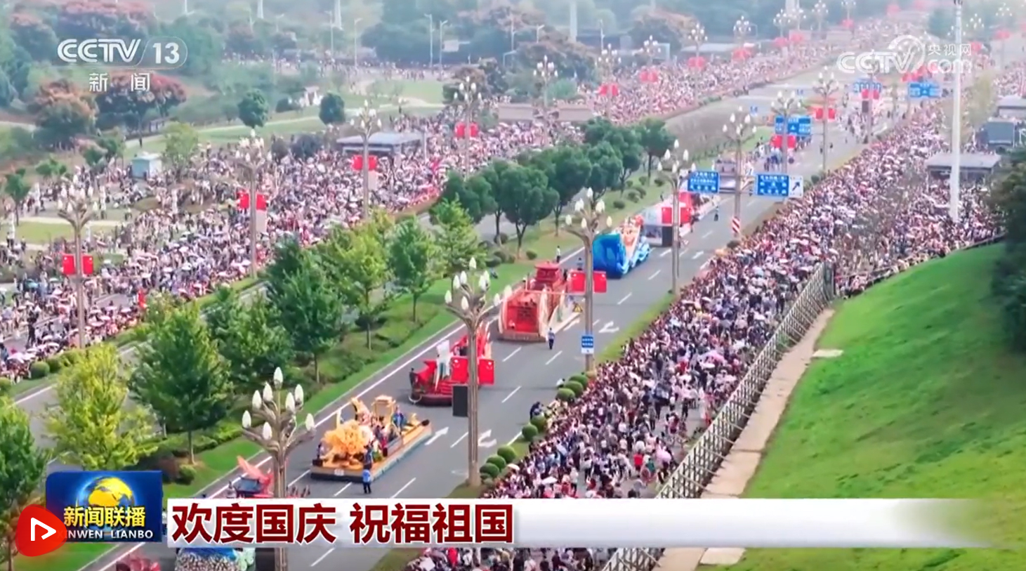 10月1日,在湖北武汉,20多台大型花车列队齐发,人们从一组组花车造型中感受时代发展。辽宁沈阳的低空飞行表演,给市民游客带来全新的假日体验。在四川遂宁、广西南宁、黑龙江绥化等地,人们用一个个欢快的节目、一幅幅精美的剪纸,礼赞新时代。在安徽怀宁,假日期间,30多场惠民演出丰富了大家的文化生活。