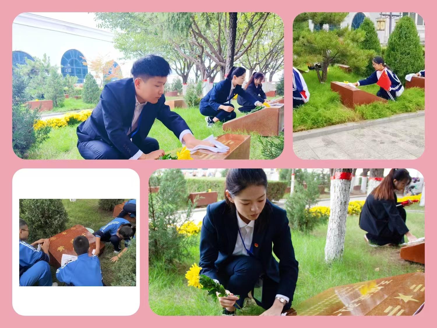 在祭扫环节,志愿者依次向纪念碑敬献黄菊花,并齐声合唱《我和我的祖国》,歌声中饱含对祖国的热爱与对先烈的敬意。仪式结束后,学生代表擦拭烈士纪念碑,大学生志愿者清扫广场。全体人员还参观了陵园展厅,通过历史图片和革命文物,深入了解先烈事迹。
