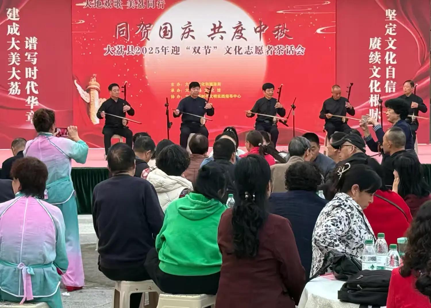 三秦都市报-秦闻讯(李世居 马华丽 记者 代泽均)9月29日,由大荔县文化和旅游局主办、文化馆承办、新时代文明实践指导中心协办的“同贺国庆 共度中秋”文化志愿者茶话会在县文化馆举行。来自全县各文化类协会、文艺社团、非遗工坊及传承人代表、文化志愿者欢聚一堂,以艺术之名共庆团圆佳节,以文化之美礼赞盛世华诞。