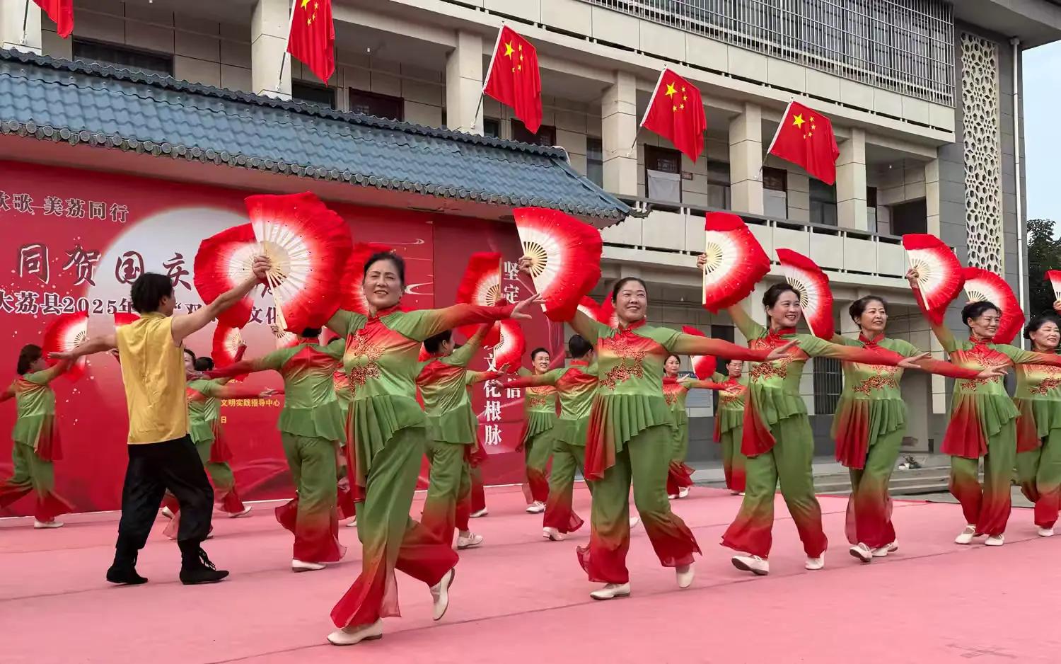 现场文艺爱好者表演了《舞动枣乡》。非遗互动环节《春江花月夜》古筝与朗诵的跨界演绎,将“春江潮水连海平”的古典意境与现代艺术表达相结合,带领观众穿越千年感受中秋文化的魅力,朗诵《中华声音》通过声情并茂的演绎,展现祖国山河的壮丽画卷,传递身为中国人的自豪与骄傲。群舞《江山》以恢宏大气的编排将活动推向高潮,演员们用优美舞姿抒发对伟大祖国的深情祝福,展现新时代文化工作者的精神风貌等节目呈现给大家。