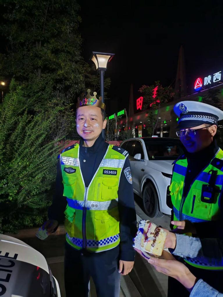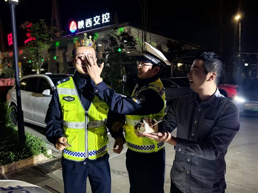 三秦都市报-秦闻讯(记者 李佳)国庆黄金周第二日,古都西安继续迎来旅游高峰,高速公路作为游客入陕的重要通道,交通疏导压力倍增。在这举国欢庆的日子里,西安高速交警李靖度过了一个难忘的生日。