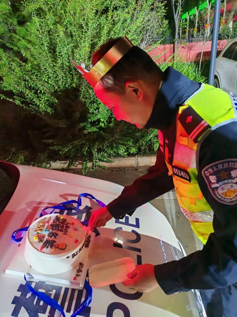 同事们悄悄从执勤车上拿出了提前准备的生日蛋糕,点燃蜡烛,李靖才想起今天是自己的生日。“生日快乐!”同事们围拢过来,轻声合唱生日歌。“很惊喜,是一个非常难忘的生日!”李靖说。