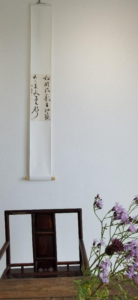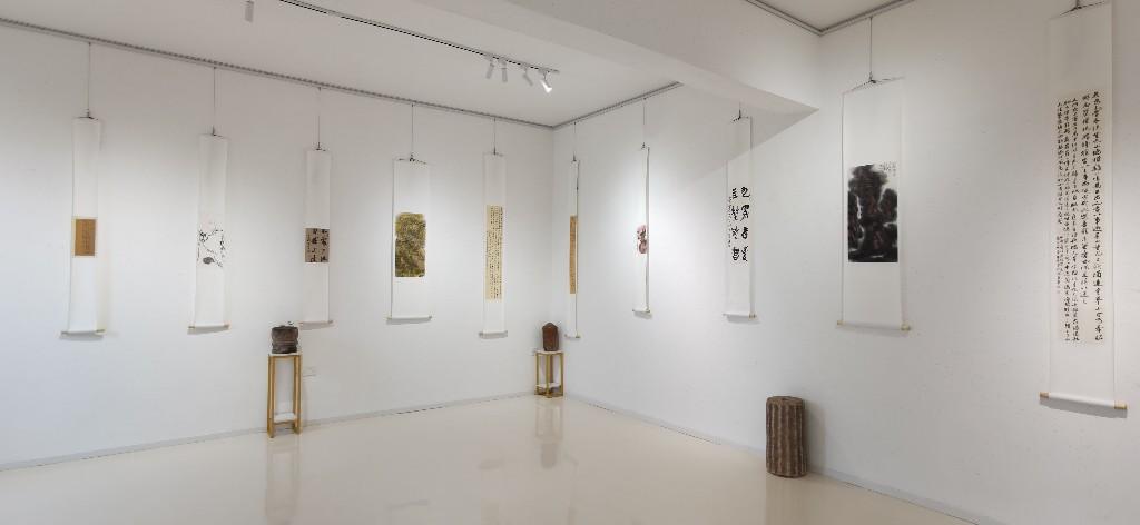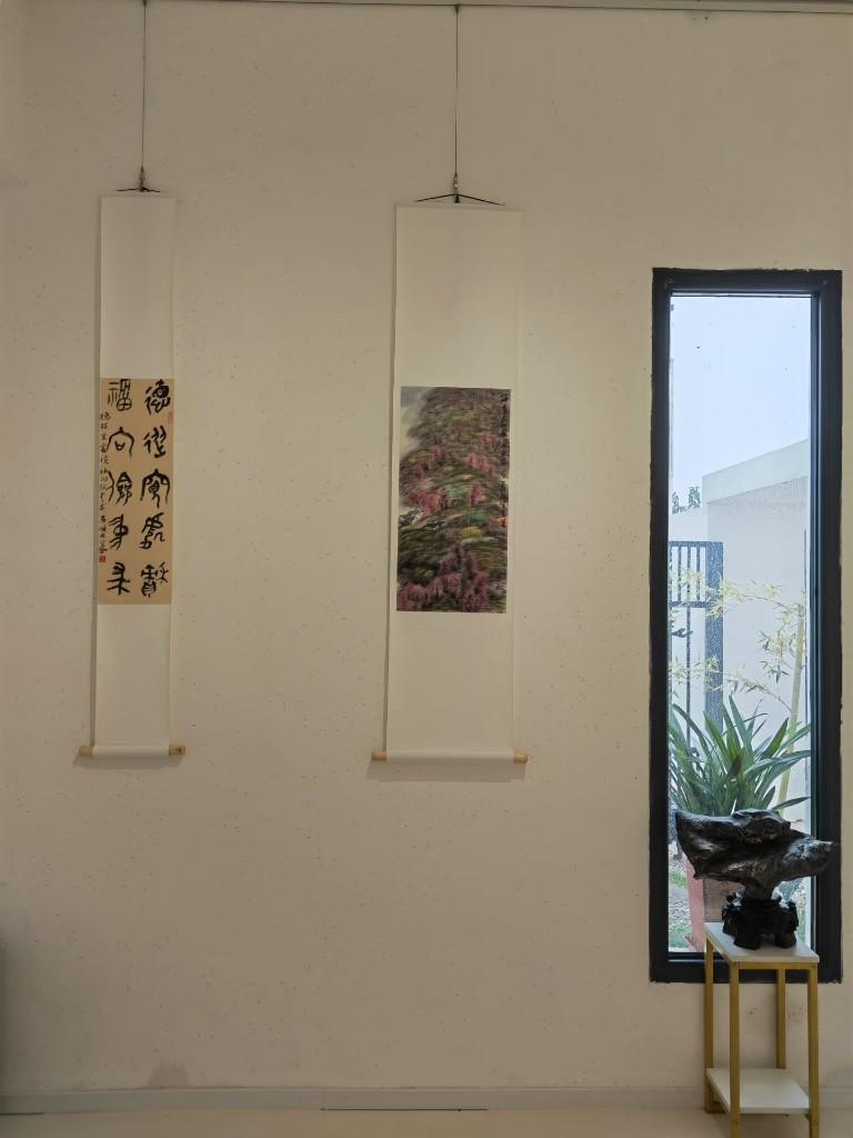 馆内馆外,一砖一瓦,一草一木;一灶一炉,一丝一竹;一案一几,一灯一烛,皆由国庆先生亲力亲为,匠心独运。每处细节无不映照其文心妙思,凝聚其才情巧艺,尤其透射其心、其性、其灵。置身其间,对坐品茗,不由令人心生东坡先生“且陶陶、乐尽天真”之向往,体味“微雨竹窗夜话,雨后登楼看山”之清欢,享受“花坞樽前微笑,抚琴听者知音”之雅趣。清欢之余,赏“紫庐艺事”书画首展,更添韵致。作品尺幅虽精,意境却远;风格各异,相映成趣;个性独具,腕底有古。