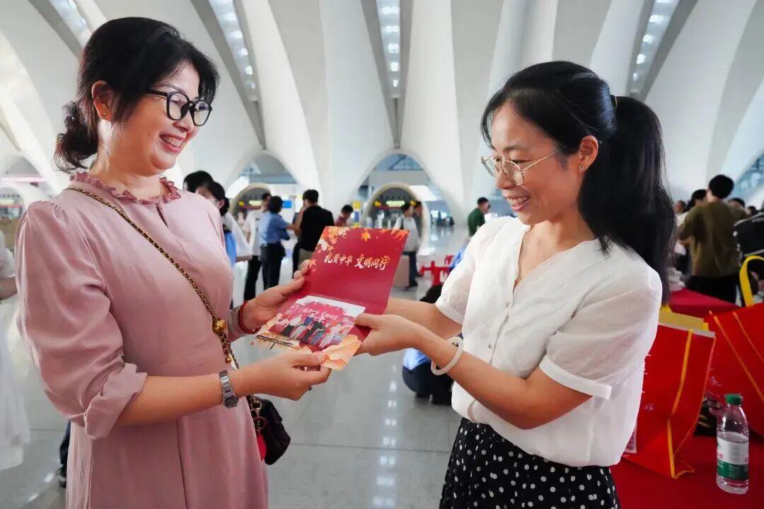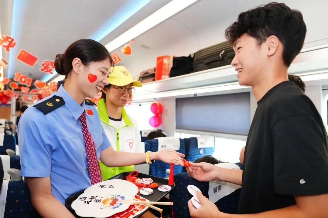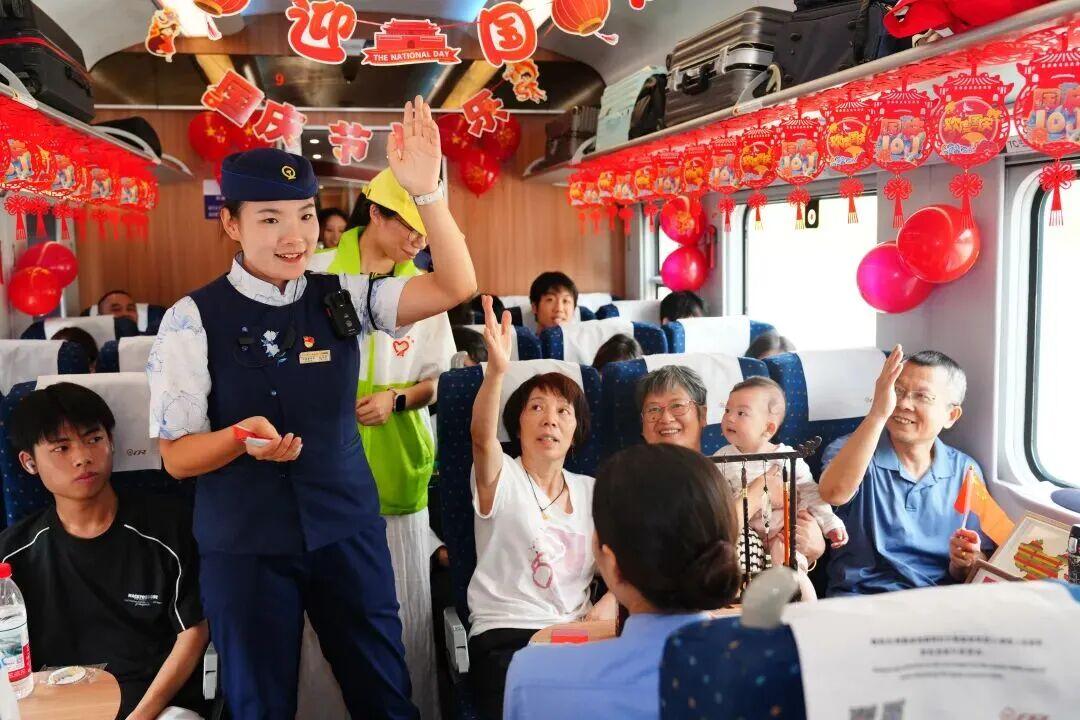 国庆中秋假期期间,C193次“井冈山号”列车上举行“家国同欢 一路同行”列车国庆主题活动,让旅客在旅途中通过文化互动感受温情服务。