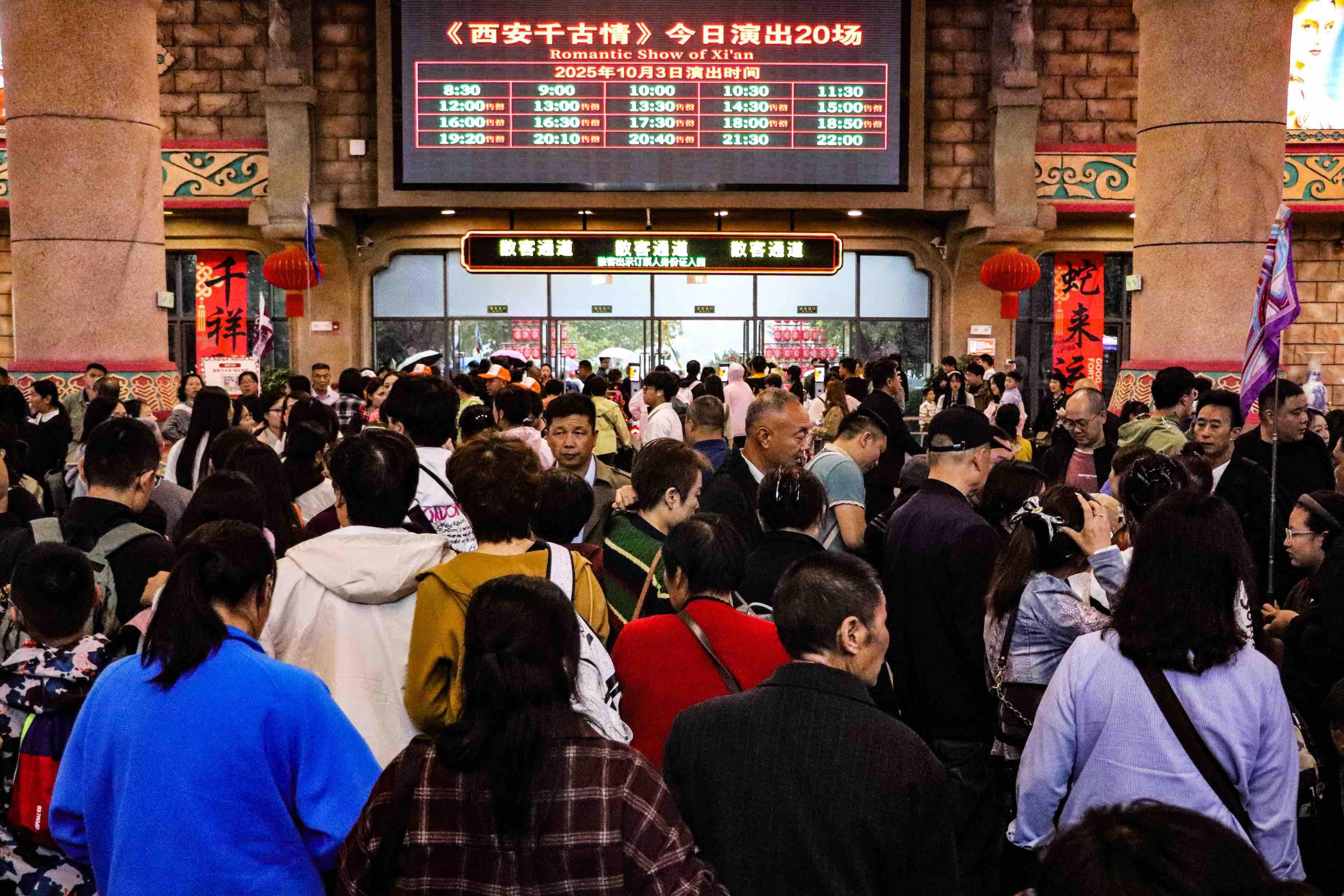 三秦都市报-三秦网讯(记者 余明)10月3日,大型歌舞《西安千古情》单日演出20场,再创西安大型旅游演艺单日演出场次、接待人数新纪录。