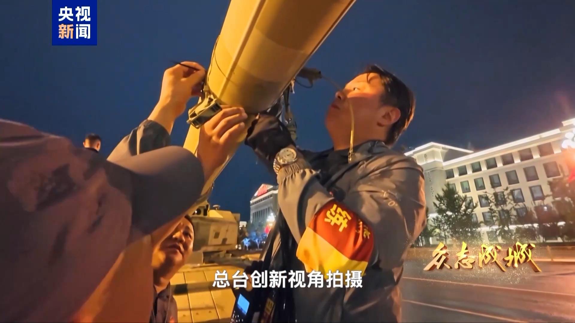 在直播中,总台创新视角拍摄和特种设备使用量双双创历史之最。首次在阅兵沿线路南设置固定高点机位;首次在长安街和天安门广场周围启用三条空中索道拍摄系统,借助7台主臂伸缩可达70米、拥有强稳定性和抗风能力的高空作业设备;在首次亮相的地面和空中装备上加装特殊视角微型机位等一系列设计,实现了空地联动呈现阅兵盛况的视听突破。