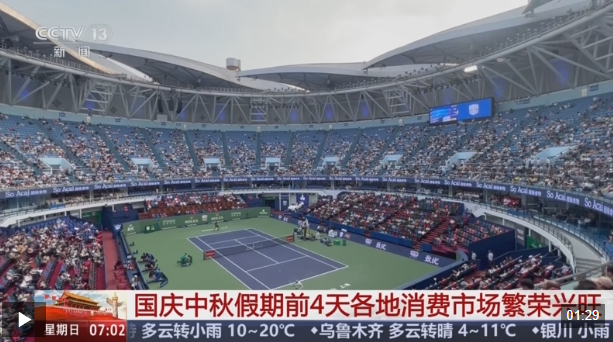 服务消费活力十足。赏秋游、自驾游、红色游等持续火热,国庆档电影票房突破10亿元,中国网球公开赛等多项体育赛事掀起观赛热潮。