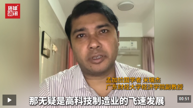 今年是中华人民共和国成立76周年,也是“十四五”规划的收官之年。目前任教于广东财经大学经济学院、来自于孟加拉国的米瑞杰(Miraj Ahmed)先生在国庆假日期间接受了总台环球资讯的专访。作为长期研究中国经济的学者,他说,中国在“十四五”期间取得的发展成就令人瞩目;他认为,中国持续扩大对外开放,并在绿色转型等领域取得巨大成就,为世界尤其是全球南方国家提供了宝贵机遇。