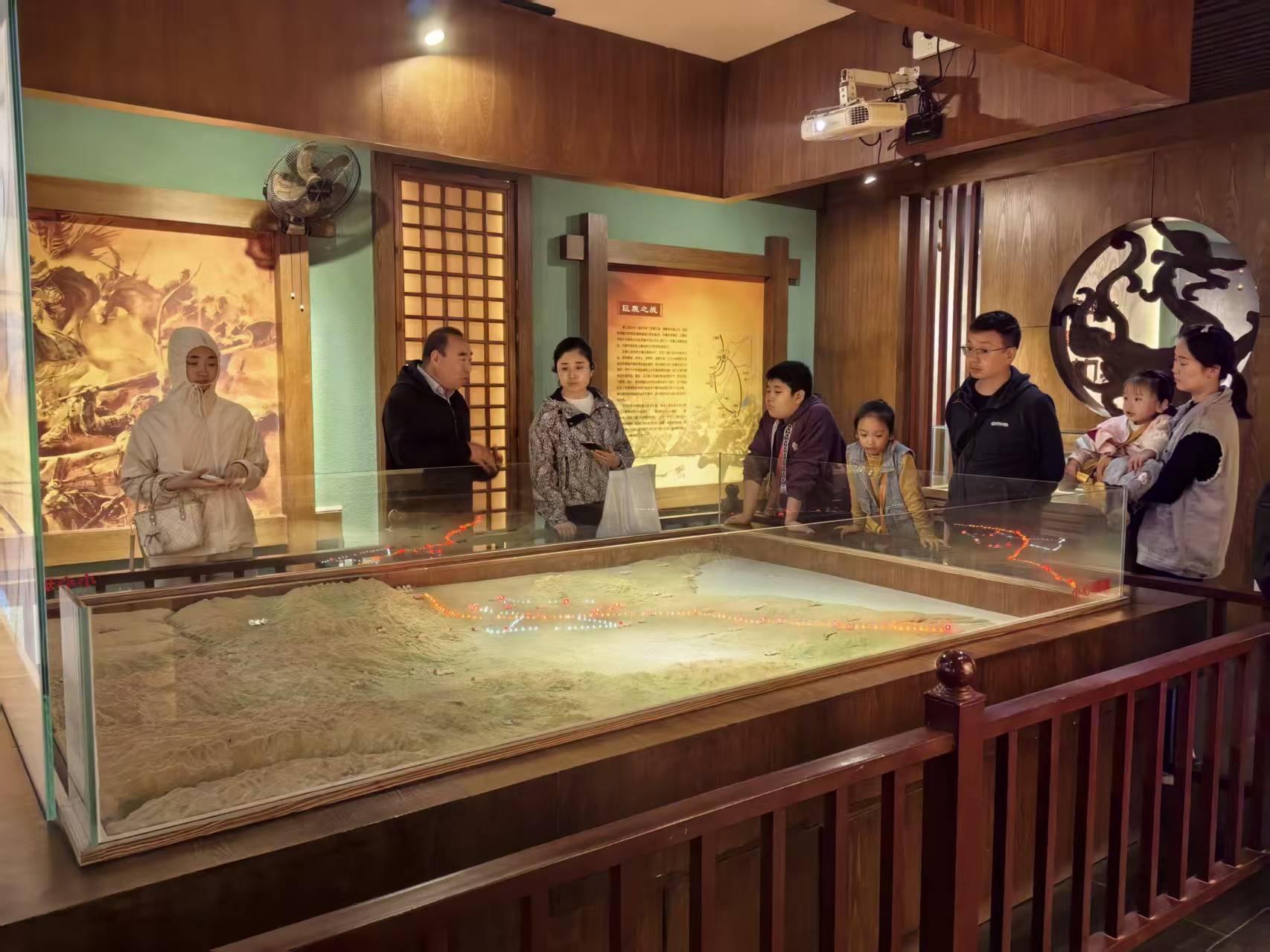 “孩子刚学了《鸿门宴》一文,特地趁假期带他来实地看看。”来自咸阳的游客李先生牵着儿子,在遗址沙盘前细细端详。站在当年刘邦、项羽对峙的故地,书中文字仿佛“活”了过来,“这种身临其境的学习体验,比单纯看书本深刻得多”。