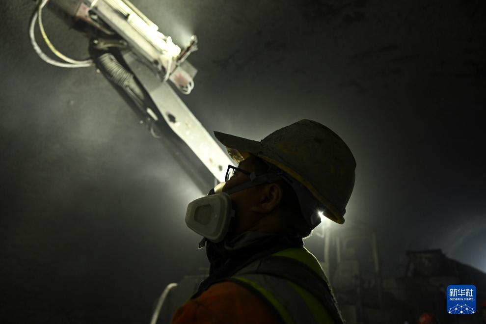 来自甘肃的工人王更兴在昭温公路西天山特长隧道左洞内施工(10月5日摄)。
