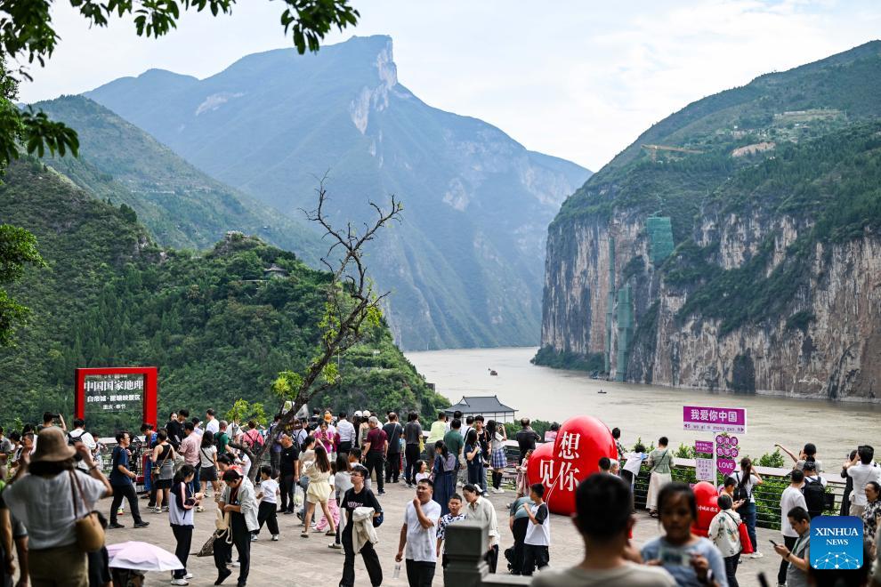 Tourists visit the Kuimen gateway to the magnificent Three Gorges of the Yangtze River, in Fengjie County, southwest China's Chongqing Municipality, Oct. 5, 2025. Tourist destinations across China are witnessing a surge in visitors as the country's eight-day National Day and Mid-Autumn Festival holiday began on Wednesday. (Xinhua/Chen Yehua)