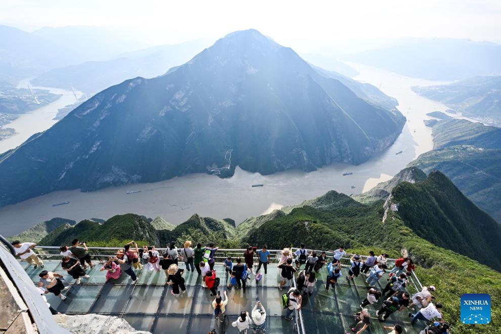 Tourists visit a scenic spot in Three Gorges on the Yangtze River, in Fengjie County, southwest China's Chongqing Municipality, Oct. 5, 2025. Tourist destinations across China are witnessing a surge in visitors as the country's eight-day National Day and Mid-Autumn Festival holiday began on Wednesday. (Xinhua/Chen Yehua)