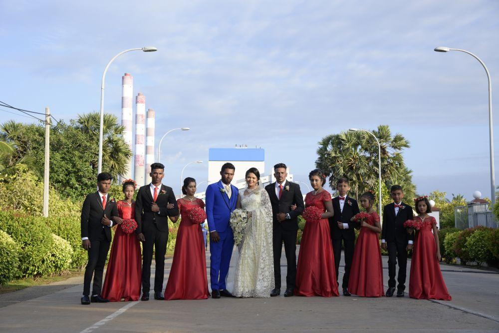2025年1月10日,在斯里兰卡卡尔皮提亚的普特拉姆燃煤电站,一对新人拍摄婚纱照。新华社发(中国机械设备工程普特拉姆燃煤电站项目供图)