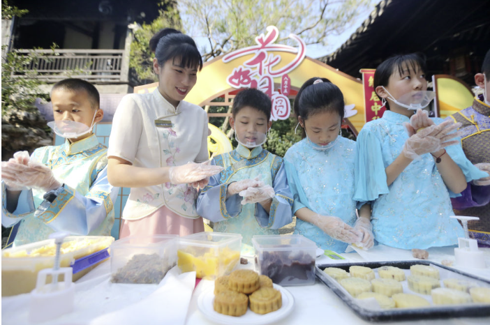 西安奥体中心内,“00后”大学生陈欣第一次尝试制作古法月饼。“原来月饼上的纹样都有寓意。”她兴奋地说,“这不是点心,是能吃的文化。”