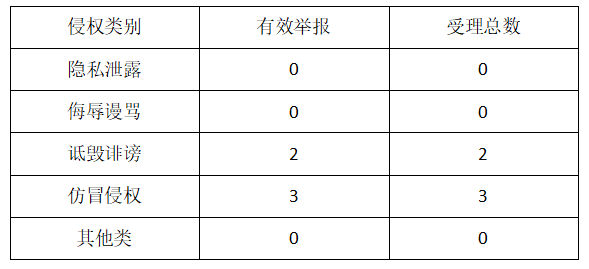 2025年9月,累计受理网络侵权举报5件,其中涉企举报1件。