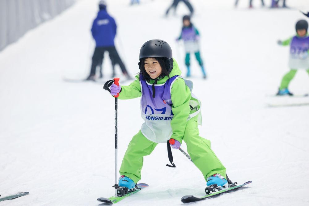10月7日,一位小朋友在深圳·前海冰雪世界学习滑雪。新华社记者 梁旭 摄