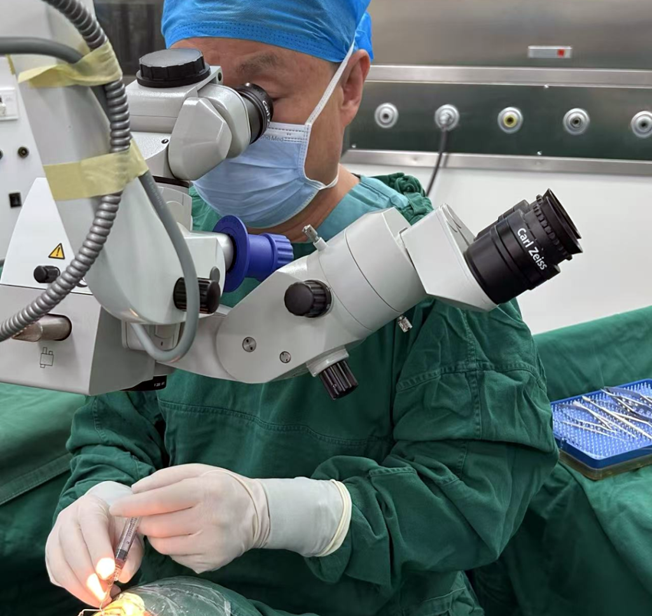手术由张红兵院长主刀,他凭借精湛的技术和丰富的临床经验,仅用十余分钟便顺利完成手术。术中,人工晶体精准植入患者眼内,全程患者无不适,术后即刻检查显示,患者眼部各项指标正常,视力较术前有显著提升。