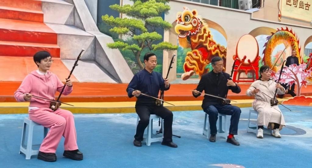 现场各区域亮点纷呈。文艺展示区带来舞蹈《小苹果》、歌曲《从小卖蒸馍》,以轻快的节奏瞬间点燃现场活力;杂技《独轮车打花棍》《晃梯表演》则以娴熟技艺与惊险动作赢得观众阵阵掌声;二胡合奏《众手浇开幸福花》旋律激昂,传递出美好生活的欢乐气息,秦腔《庵堂认母》《赵五娘吃糠》等经典选段,则用醇厚唱腔与饱满情感,展现旬邑本土文化底蕴。