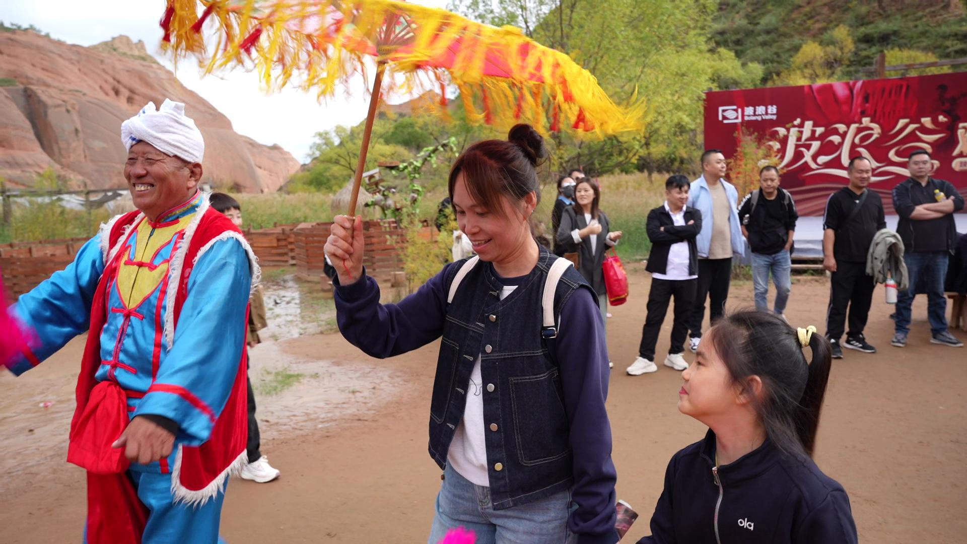 为让游客“赏风景、品文化”,景区精心引入靖边跑驴、霸王鞭、陕北说书等非遗代表性项目。在“非遗体验区”,游客们围学跑驴造型,跟随剪纸师傅剪制“中国心”,聆听陕北说书人讲述红色故事。锣鼓声与欢笑声交织,现场充满欢乐氛围。来自河南的游客王柯表示:“本是带孩子来看丹霞地貌,没想到能体验这么多非遗手艺,孩子说有机会还要来。”