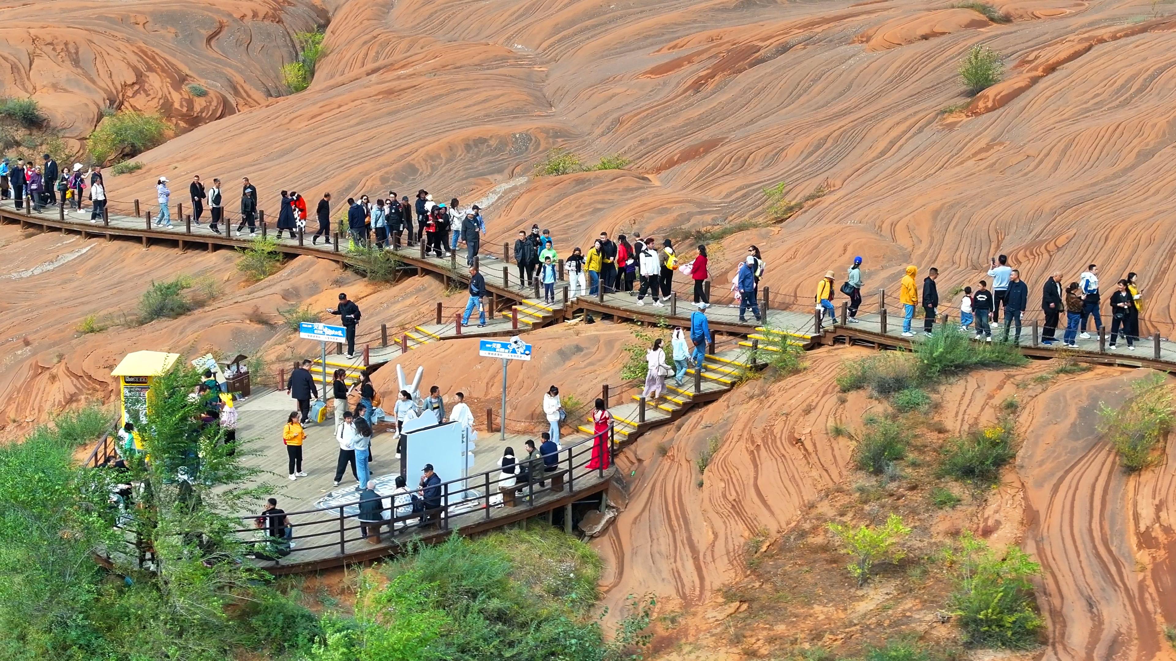 景区发起的“各行各业在陕西波浪谷向祖国表白”活动引发全网共鸣,相关话题阅读量突破千万。93岁的老战士张茂恒专程来到景区,轻抚丹霞石动情地说道:“当年保家卫国,如今看山河锦绣。”老战士胸前的勋章在阳光下闪闪发光,在场游客自发鼓掌致敬,红色基因与自然景观深度交融,成为假期最温暖的一幕。