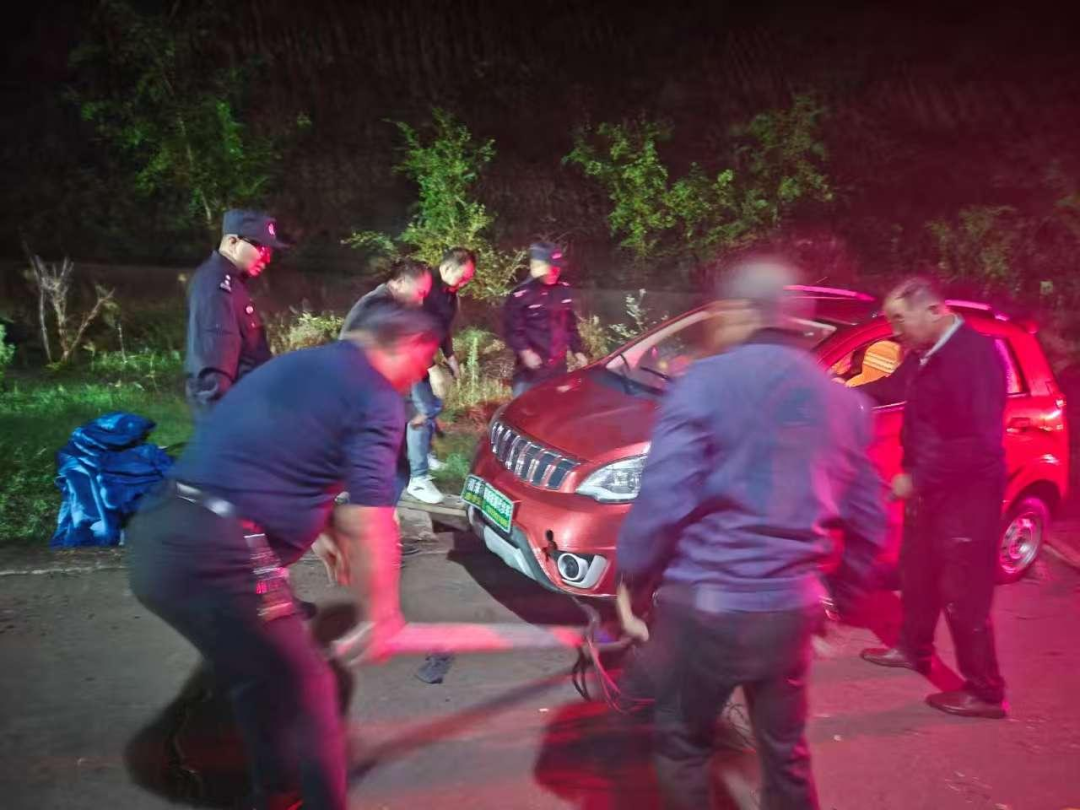 见此情景,巡逻警力迅速反应,第一时间启动警村联动机制,立即与事发地柳村村书记取得联系。村委会接到消息后,迅速组织人手赶赴现场,并紧急调派周边可用工具。