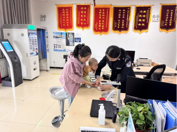 民警首先对材料进行逐项核验,耐心向家属说明流程与注意事项,随后在不影响其他群众办理的前提下,耐心开展拍照与采集工作,民警多次调整设备视角与光线、采用短时间抓拍并配合家属抱稳安抚,指纹采集时以轻柔按压、多次重复比对的方式逐步完善数据。
