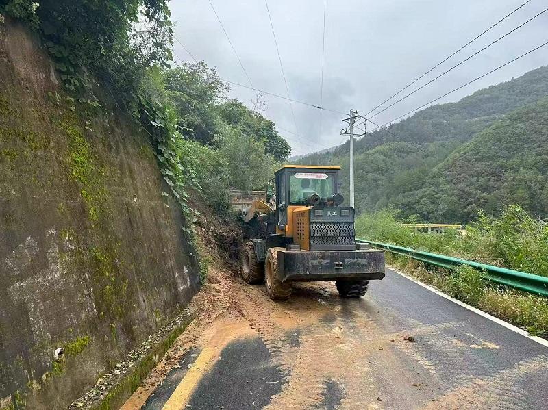 组织机械对因近期强降雨辖区村组塌方路段进行抢修