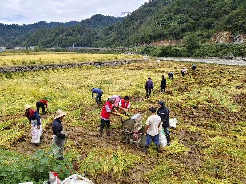 干群协同秋收,全力护航“丰收季”。“双节”前后恰逢秋收关键期,针对劳动力短缺的农户,镇政府牵头组建由镇村干部、党员、青年志愿者组成的“秋收志愿服务队”,协调收割机、运输车等农机具,帮助农户抢收农作物。志愿者踏着泥泞,帮助10余户困难家庭收割、搬运、晾晒、储藏稻子,确保秋粮及时归仓。