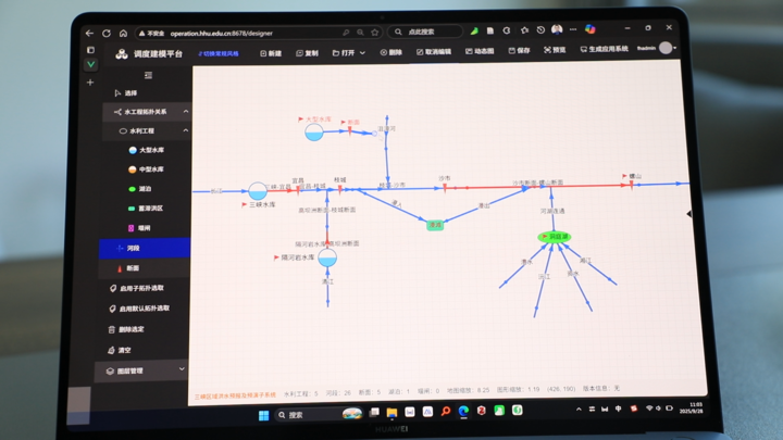 在河海大学水工程调度团队钟平安教授的带领下,朱非林参与了面向三峡工程这一国之重器的重大科研攻关。团队主要在"快"和"准"两个字上下功夫。过去,为一个流域搭建防汛调度模型和系统,需要工程师花费几天甚至几个月手动创建,如同手工编织一张巨大的网。朱非林团队开发了一套智能在线建模系统,像搭"数字乐高"一样,通过简单的鼠标拖拉拽操作,就能在几分钟内建立起全国任意流域或区域的调度系统和模型,极大提升了防汛决策的响应速度,为洪水调度赢得了宝贵的黄金时间。