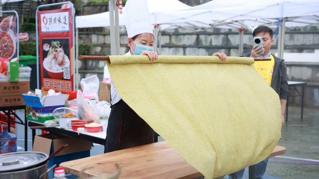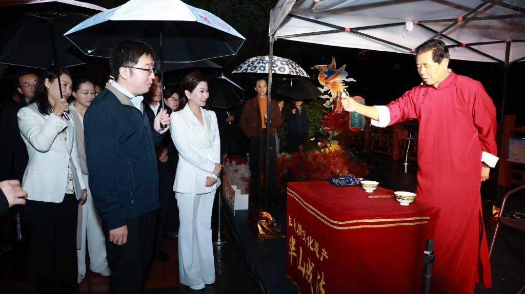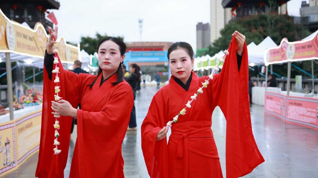 除了静态展示,在陈仓老街的临河步道上、凉亭桥榭间,还有陕西各地非遗项目的活态展演,如高亢的陕北民歌、诙谐的二鬼摔跤、悠扬的紫阳民歌等,持续吸引着现场嘉宾和群众的目光。