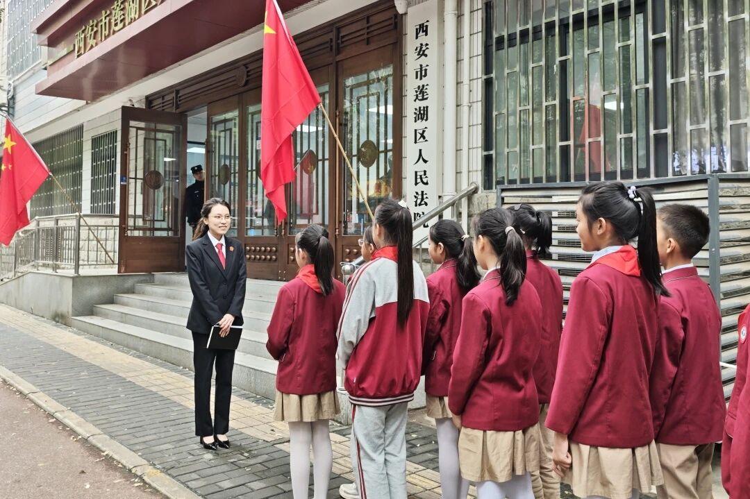 三秦都市报-三秦网讯(陈思含 记者 文晨)10月9日,来自西安市莲湖区报恩寺街小学的十余名小学生走进莲湖区人民法院,担任该校法治副校长的法官助理陈思含带领孩子们开展了一场别开生面的“法律小卫士启蒙之旅”。