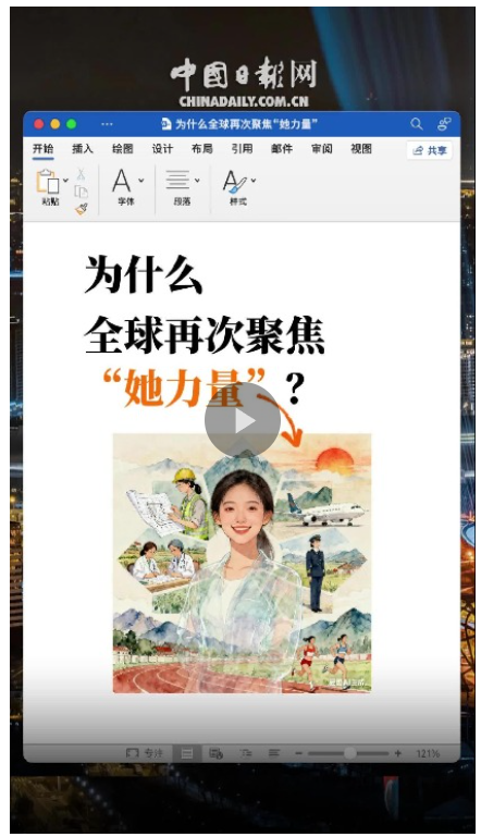 为什么全球再次聚焦“她力量”?看完这个视频,也许你会有答案。在北京世妇会召开30周年之际,中国将再次召开全球妇女峰会。各方将再次聚首北京,共商全球妇女事业发展大计。期待看到更多女性人生出彩、梦想成真。
