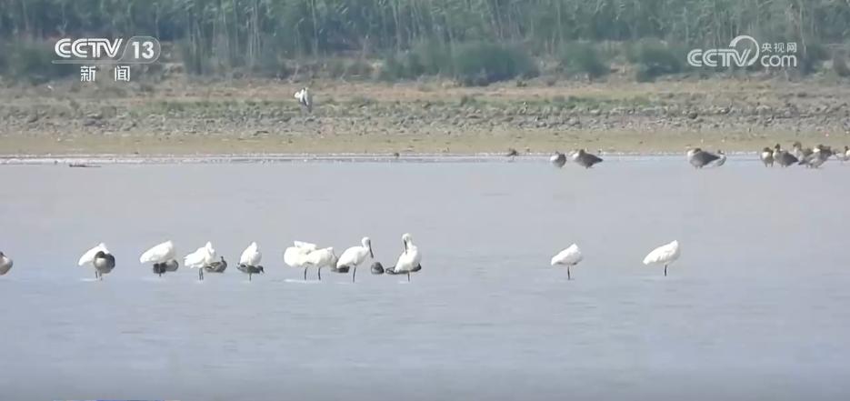 在江西鄱阳湖南矶湿地,保护区工作人员在近期监测中发现,上万只冬候鸟已经抵达湖区,主要以大雁、野鸭、白琵鹭及鸻鹬类候鸟为主。