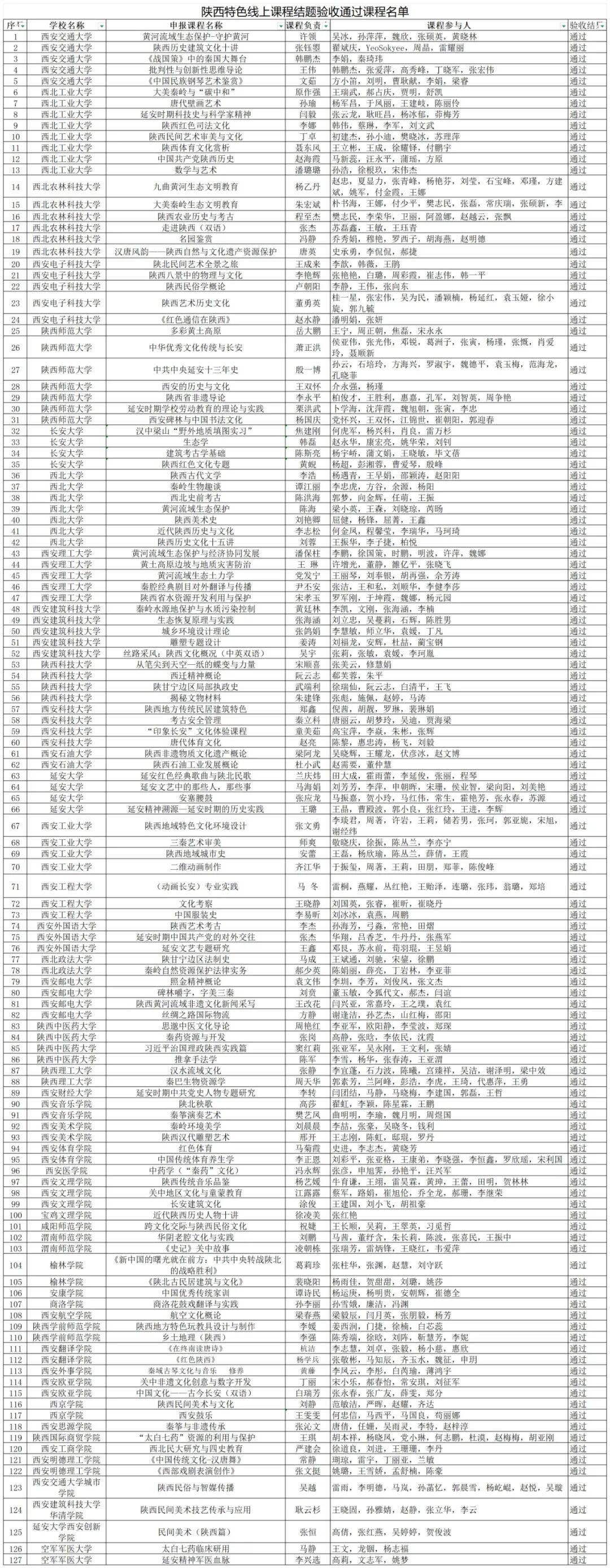 三秦都市报-秦闻讯(记者 张彦刚)记者10月14日从陕西省教育厅了解到,为促进高等教育优质资源培育与共享,推动信息技术与教育教学深度融合,拓展陕西省特色线上课程资源,助力国家高等教育智慧教育平台建设,按照陕西省教育厅办公室印发《关于做好陕西特色线上课程立项建设工作的通知》,全省开展了陕西特色线上课程立项建设工作。按照建设时限要求,陕西省教育厅对立项建设的135门陕西特色线上课程进行了结题验收,其中127门课程验收通过,近日陕西省教育厅正式公布了陕西特色线上课程验收认定结果。