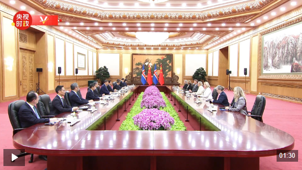 10月14日上午,国家主席习近平在北京人民大会堂会见来华出席全球妇女峰会的冰岛总统托马斯多蒂尔。