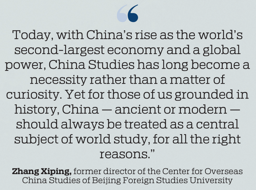 "Today, with China's rise as the world's second-largest economy and a global power, China Studies has long become a necessity rather than a matter of curiosity. Yet for those of us grounded in history, China — ancient or modern — should always be treated as a central subject of world study, for all the right reasons."
