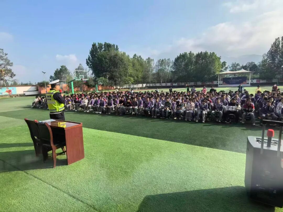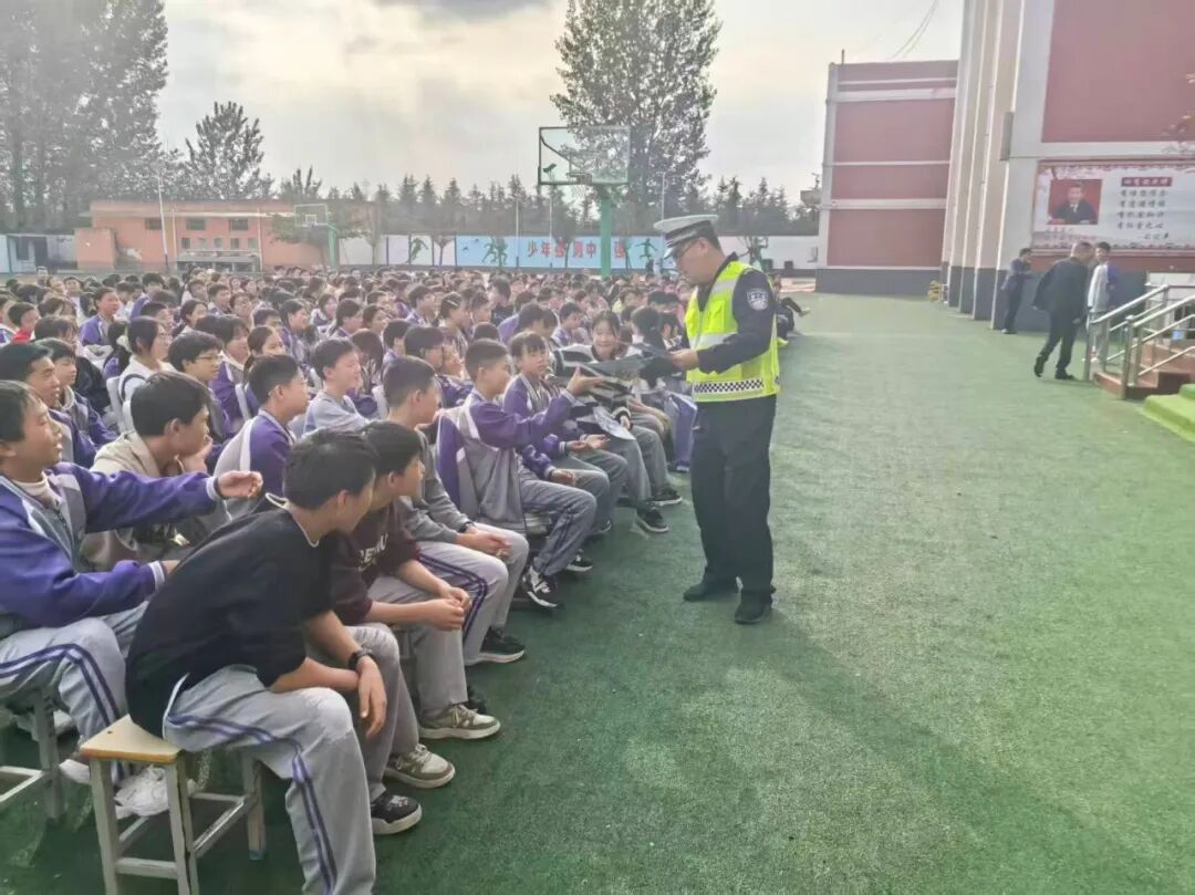 三秦都市报-三秦网讯(记者 葛兰)10月13日,周至县公安局交管大队集贤中队组织民辅警走进九峰初级中学,开展“交通宣传+安全检查”双联动活动,为全校师生筑起一道坚实的平安屏障。