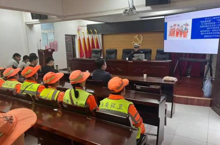 会上,交警新城大队长乐路中队中队长花钰杰讲解了当前道路交通安全现状,分析了当前辖区内面临的交通安全形势,通报了本地典型交通事故案例。对上岗要求、工作规范等内容进行了系统培训,针对保洁员交通安全意识薄弱,往往出现横穿马路等情况,以真实案例视频为全体保洁员上了一堂生动的交通安全课,使保洁员在实际工作中避免交通事故的发生。