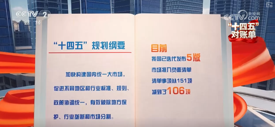 目前,我国已迭代发布5版市场准入负面清单,清单事项从151项减到了106项,集中清理超4200件妨碍全国统一市场和公平竞争的规定和做法。