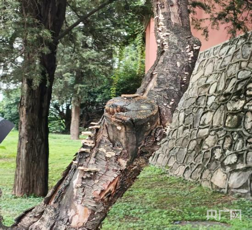 在连续阴雨天气影响下,记者还在街头的草坪里、树干上发现,不少白色、褐色的小蘑菇冒了出来,簇拥着生长在土壤里、枝干上,成为雨天里的别致风景。