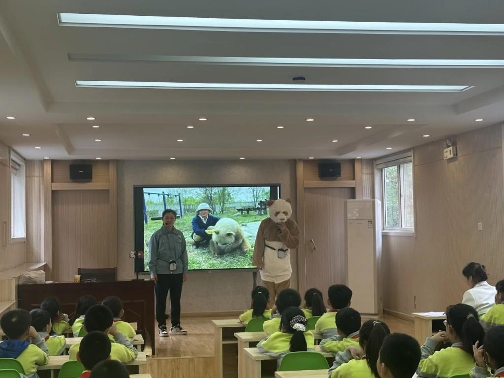 在大熊猫科普环节,秦岭大熊猫研究中心的团队老师通过自编自导的科普剧,聚焦圈养棕色大熊猫“七仔”。以对话形式,通俗解读了七仔棕色毛发的成因、熊猫保育员的日常工作,还通过互动问答加深学生记忆,让同学们在欢笑中了解国宝保护的科学知识与背后的用心。