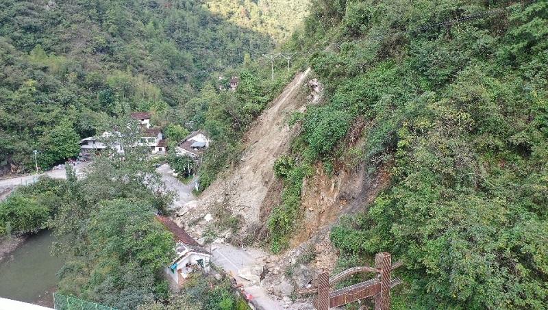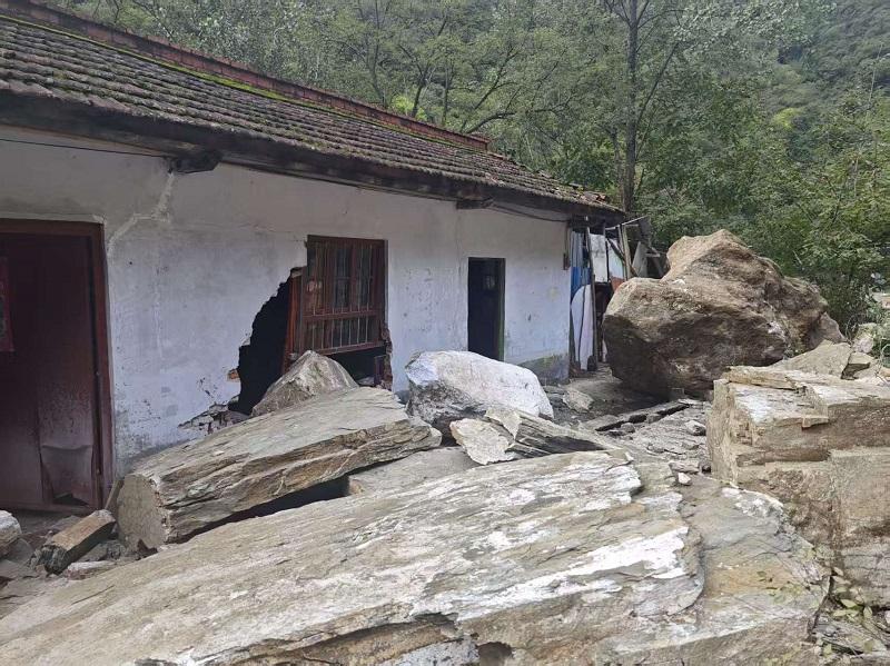 10月14日,宋水平从排查组工作人员拍的照片中看到了老房子的模样:原本整齐的院墙塌了半截,碎石堆满整个堂屋,屋顶还破了个大洞。“这要是当晚我在屋里……”他不敢再想。据现场测量,这次崩塌的山体宽30米、高20米,坡度近80度,总共有1200立方米的石头滚下来,除了冲毁他的房子,还堵了村道。